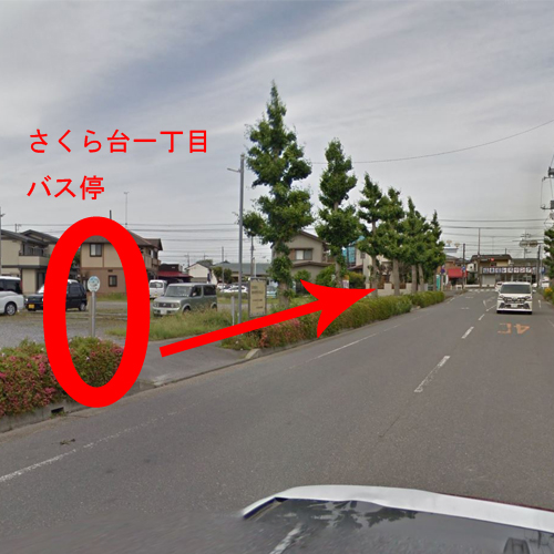 赤い丸印のバス停で関東鉄道バスをお待ち下さい。 |